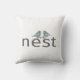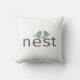 Einfache graue Typografie mit "Unser Nest" auf weißem Kissen mit zwei gemusterten Vögeln. Die Farbe ist in Weiß verkauft, aber die Hintergrundfarbe kann an die Gestaltung und den Stil angepasst werden. Design von Simple Living.