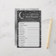 Dieses Spiel "over the moon" ist perfekt für alle, die dieses Jahr eine Babydusche haben. Das Design zeichnet sich durch einen silbernen Mond mit Sternen auf einem Chalkboard-Effekt-Hintergrund und einfach zu personalisieren Template-Formulierung. Geben Sie einfach diese Spielblätter an Ihre Gäste, um an der Dusche zu spielen, wer die Worte zuerst entwirft, gewinnt einen Preis Ihrer Wahl! Antworten: 1) Windeln 2) Babydusche 3) Leitungen 4) Kinderzimmer 5) Deckbett 6) Schnuller 7) Eine Seite 8) Sattel 9) Aktivitätsmat 10) Teether 11) Bassinet 12) Flasche 13) Rattle
