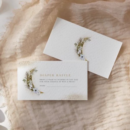 Diese herrliche Einladung enthält Goldtext, einen boho blumigen Mond, Goldstaub und Wolkenakzente.