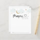 Die Baby Duschkarte bietet blaue Wolken und goldene Sterne. Die Gebetskarte veranlasst die Gäste, Gebete für die Eltern zu teilen, damit sie sich auf das Baby vorbereiten.