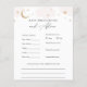 Babyduschberatung und Vorhersagekarte mit Aquarell-Rosa-Wolken und goldenen Sternen. Eine unterhaltsame Art, mit den Gästen während der Babydusche zu interagieren. Entspricht der Over the Gold Moon Kollektion im Adore Paper Co Zazzle Shop.