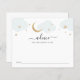Die Baby Duschkarte bietet blaue Wolken und goldene Sterne. Die "Advice"-Karte fordert die Gäste auf, Ratschläge für die Eltern auszutauschen, damit sie sich auf das Baby vorbereiten können.