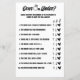 Machen Sie Ihr Brautparty oder Ihren Junggeselinnen-Abschied unvergesslich mit diesem Over oder Under wedessing Ratespiel! Die Gäste können sich bei der Voraussage entscheiden, ob die Zahlen in den einzelnen Aussagen über oder unter dem realen Betrag liegen. Dieses Spiel mit seinem modernen Schwarz-Weiß-Design und schicken Ringdarstellungen ist eine perfekte Ergänzung zu Ihren Hochzeitsfestlichkeiten. 🎉 Warum Sie Liebe haben: Interaktive und Spaß: Ein großartiges Geschenk für alle Altersgruppen: Klassische Anzüge aller Altersgruppen: Klassische Schwarz-Weiß- jeden Hochzeitstil High-Print: Professionell entworfen für ein poliertes Aussehen personalisierbar: Machen Sie es sich selbst mit individuellen Texten oder Details, die die vorhandenen Gegenstände koordinieren: Karo unsere Kollektion für die Abstimmung von Hochzeiten, Dekoration! 💍 Perfect For: Brautparty Junggeselinnen-Abschied Hochzeiten Proben Engagement Parties leicht personalisieren diese Over or Under Game um Ihre Veranstaltung zu stimmen! Editieren Sie einfach den Text, fügen Sie eine spezielle Nachricht hinzu, oder ändern Sie Details, um es einzigartig zu machen. Klicken Sie auf "Personalisieren", um zu beginnen!