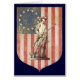 Zeichnen von ÜbereinstimmungMinuteman mit der ersten amerikanischen Flagge 13 Kolonien (Betsy Ross) im Hintergrund. Sie können Ihre Mitteilung auf der Abdeckung und dem Gruß nach innen hinzufügen.