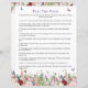 Die moderne, elegante und lustige "Pass The Poem" Baby Shower Card mit ihrem hübschen Design aus rosa und violetten Blumen, mit Schmetterlingen und Hummeln, die herumfliegen. Sie können den gesamten Text an Ihre spezifischen Bedürfnisse anpassen. Bitte kontaktieren Sie den Designer für alle passenden Produkte, die nicht verfügbar sind.