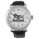 Uhr, Vintage Männeruhr mit schwarzem Lederarmband