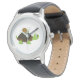 Kinder Edelstahluhr mit schwarzem Lederarmband
