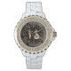 Eine wunderbare Damenuhr mit weißem Armband und grün-weiß-kariertem Ziffernblatt. Trägt sich ganz fabelhaft. Exzellenter Druck, sehr klare Farben. Schönes Design.