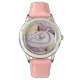Kinderuhr aus Edelstahl mit rosa Lederarmband