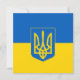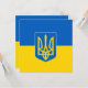 Flachkarte mit der Flagge der Ukraine, blaue und gelbe Fahne mit ukrainischem Wappen (Emblem) mit einem Dreieck in der Mitte