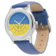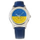 Beobachten Sie mit der Flagge der Ukraine und einem Friedenssymbol