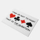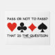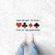 Wenn Sie jemals Bridge gespielt und darüber nachgedacht haben, ob Sie passieren sollen, werden Sie diese Brücke Spaß Türmatte mit den vier Karten-Anzügen genießen, zusammen mit dem Sprichwort "Pass oder Not To Pass That is the Question". Machen Sie eine doppelte Fahrt auf das, was Sie sich das nächste Mal, wenn Sie an der Reihe ist, mit dieser Türmatte zu bieten! Mit Entschuldigung an William Shakespeare auf diesem gemeinsamen Bridge-Sprichwort!