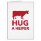 Spaß für Bauern, Viehviehzüchter. Bild einer jungen Kuh mit den Wörtern "umarmen eine Färse" unter ihm. Groß für Bauersmärkte, Kuh läuft, Rodeos.