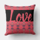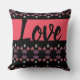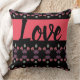 Rosa Koralle, Pflaume lila und schwarz. Personalisieren Sie den Text der Liebe nach Ihrem eigenen Namen, personalisieren Sie ihn für einen Freund. Wunderschönes valentinisches Kissen mit Herzmuster.