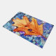 Hübsche Wasserfarbe eines braunen Herbstblattes vor blauem Wasser.