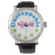 Uhr, Vintage Männeruhr mit schwarzem Lederarmband