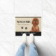 Niedliche Fußmatte, die eine Illustration eines unbekümmerten Königcharles Spaniel kennzeichnet. Kundengerechte Hintergrundfarbe und -texte. Perfektes Geschenk für den Hundliebhaber oder Kavalier-Königcharles Spaniel-Eigentümer.