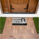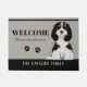 Niedliche Fußmatte, die eine Illustration eines unbekümmerten Königcharles Spaniel kennzeichnet. Kundengerechte Hintergrundfarbe und -texte. Perfektes Geschenk für den Hundliebhaber oder Kavalier-Königcharles Spaniel-Eigentümer.