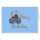 Ein Geburtstagjunge Teddybär mit heller Babyblau-Rautenstrickjacke und blauem Hut sagt, dass mein Beary erster Geburtstag ein großes 1. Geburtstagsgeschenk für den Geburtstagsjungen macht.