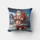 Das klassische Vintage Kissen mit dem Bild des Weihnachtsmannes ist eine herzzerwärmende Darstellung des Feiertagssjubiläums. Der Weihnachtsmann, in seinem symbolträchtigen roten Anzug mit weißer Zierarbeit, wird mit einem fröhlichen Lächeln und funkelnden Augen gesehen, die Freundlichkeit und Freude ausstrahlen. Sein runder Bauch, der an seiner fröhlichen Natur erinnert, ist von einem großen, goldenen Schnalle bedeckt. In seinen handbekleideten Händen hält er einen Sack, der mit wunderschön verpackten Geschenken überfüllt ist und bereit ist, geliefert zu werden. Die Kulisse ist eine ruhige Winternacht, der Himmel ist in tiefblauen Farbtönen gestrichen und mit funkelnden Sternen übersät. Der Mond glänzt hell und strahlt sanft auf die schneebedeckte Landschaft. Die Schneeflocken fallen sanft ab und bedecken die Erde in einer unberührten weißen Schicht. Eingebettet in dieses Winterwunderland ist es eine gemütliche Hütte, die Wärme und Komfort ausstrahlt. Die Hütte mit ihren Steinmauern und dem Strohdach ist mit bunten Weihnachtsbeleuchtung geschmückt. Aus dem Schornstein strömt Rauch, was auf ein rauschendes Feuer im Inneren hindeutet. Die Fenster strahlen ein warmes, einladendes Licht aus, das einen starken Kontrast zur kalten Winternacht schafft. Dieses klassische Weihnachtsbild und eine gemütliche Hütte an einer Winternacht verkörpern das Wesen der Weihnachtszeit - Wärme, Freude und die Vorfreude auf das Geben und Empfangen von Geschenken.