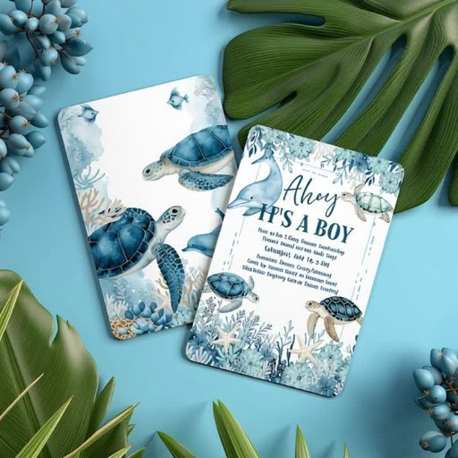 Dive into the perfect celebration with our Under the Sea Blue Ahoy It's a Boy Baby Shower Invitation! This stunning nautical-themed design features adorable dolphins, turtles, and ocean vibes in vibrant blues, ideal for a trendy baby shower. Perfect for modern moms-to-be, this customizable invite adds a splash of style with its watercolor artistry and sea-inspired charm. Ideal for unique baby showers, gender reveal parties, or nautical nursery themes. Boost your event with this eye-catching, high-quality digital design—perfect for printing or sharing online. Grab this must-have baby shower invite today to make waves at your next celebration