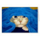 Niedliche blaue mit Augen Katze, die heraus späht von unterhalb der Abdeckungen einer blauen Decke…