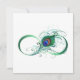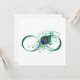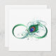 Das Symbol der Unendlichkeit mit einer hellen, grünen, künstlerischen Pfauenfeder auf weißem Hintergrund. Tattoo-Stil.