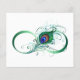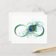 Das Symbol der Unendlichkeit mit einer hellen, grünen, künstlerischen Pfauenfeder auf weißem Hintergrund. Tattoo-Stil.