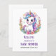 Einhornmassage für Babydusche. Laden Sie Familie und Freunde mit dieser personalisierten Party Einladung ein. Es verfügt über ein niedliches Einhorn. Personalisieren Sie diese einzigartige Party Einladung, indem Sie einen Namen, Datum, Uhrzeit, Ort und mehr hinzufügen. Diese Einladung für die Babydusche ist perfekt für eine Babydusche. Matching-Elemente verfügbar.