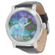 Uhr, Vintage Männeruhr mit schwarzem Lederarmband