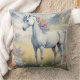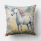 Ein größeres Kissen, das ein traumhaftes Bild eines weißen Einhorns mit einer Regenbogenmane zeigt, die in einem Feld von Blume stehend ist. Im Hintergrund sind majestätische Berge. Das perfekte Geschenk für diejenigen, die Liebe magische und mystische Einhörner. Enthält generativen Inhalt.