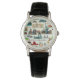 Uhr, Klassische Damenuhr mit schwarzen Lederarmband