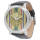 Uhr, Vintage Männeruhr mit schwarzem Lederarmband