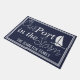 Die blaue Türmatte der Nautischen Marine mit der Phrase "Unser Hafen im Sturm" in weißer Schrift mit Ihrem personalisierten Familiennamen. Genießen Sie die klassische Küstendeleganz mit dieser großartigen nautischen Haustür.
