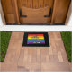 Dieses farbenfrohe Design zeigt den Staat von Wyoming, der aus einem Regenbogen gebaut ist.