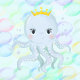 Dieses Design besticht durch einen blauen Tintenfisch des Prinzen, der in Aquarell und farbenfrohen Blasen schwimmt. Ideal für Ihre Baby-Dusche! Matching Produkte in meiner Sammlung "Prince Octopus Blue Bubbles Young Dusche ". Genießen