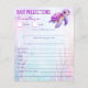 Unter dem Meer niedliche Meeresschildkröte Rosa lila Babydusche Vorhersagen und Ratschläge für Eltern Karte, Schluck und Meer Baby Junge Duschspiele
