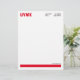 Ein moderner Businessbriefkopf mit fett unterstrichenem Design, der für einen kurzen oder initialisierten Firmennamen geeignet ist (auch wenn er für längere Namen angepasst werden kann). Firmenname oben verlassen mit Adresse, Telefon, Fax, Handy und E-Mail oben verlassen. Die Web/Domain-Adresse ist rechts über der Unterstrich-Zeile unten positioniert.Dieser Briefkopf kann auf unterschiedliche Weise weiter angepasst werden.