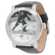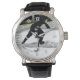 Uhr, Vintage Männeruhr mit schwarzem Lederarmband