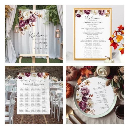 Burgundy Floral Gold Arch Fall Wedding CollectionDesignt von CaMi Designs