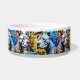 Personalisiert Große Hundeschüssel für einen Pitbuller Besitzer. Farbenfrohe Kunst, die zwei verschiedene Pitbullen zeigt, umgeben von Straßenkunst.