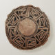 Nordamerikanischer indischer runder Entwurf leicht beunruhigt für einen älteren Blick auf einem Terrakottahintergrund.