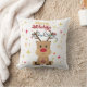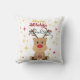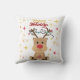 Niedliche Rentiere werfen Kissen für die Ferien. Farbenfrohe maroon/rot und goldene Ferienfarben. Sie können die Rentiere mit Ihrem Namen oder Nachnamen personalisieren.