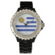 Uhr, Vintage Männeruhr mit schwarzem Lederarmband