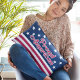 Patriotisches Kissen mit der Fahne der Vereinigten Staaten mit ihren US Flagge in Rot, Blau und Weiß, mit der Beschriftung Proud American in einem modernen roten Schriftart mit weißer Grenze.