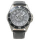Herrenuhr aus Edelstahl mit schwarzem Lederarmband