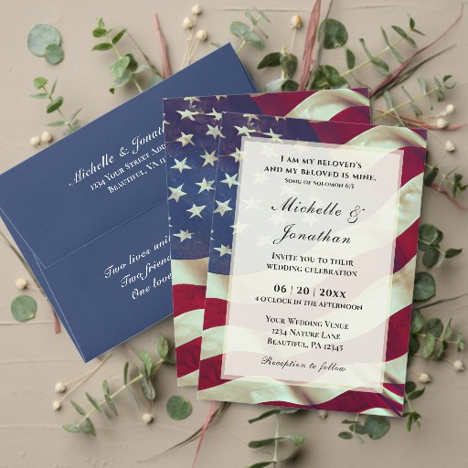 USA Flag Liebe Versage nie Wedding Bible Verse Einladungsbanderole