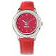 Kinderuhr aus Edelstahl mit rotem Lederarmband