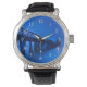 Uhr, Vintage Männeruhr mit schwarzem Lederarmband