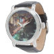 Uhr, Vintage Männeruhr mit schwarzem Lederarmband